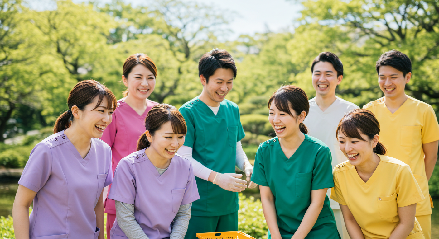 名称の『未来樹』は、大地である法人理念に根を伸ばし、個々のキャリアの多様性が虹色の枝葉のように広がり希望ある未来を表現しています。家庭状況やライフステージによって異なる「なりたい自分」を見つめるためのキャリアデザイン研修も実施したり、活躍の機会が広がるような体制づくりに向けて活動しています。共和会の未来樹に実がなり、実を食べた鳥が空へ羽ばたき、新しい芽が出て豊沃な大地となるという循環で、共和会の理念「優しい医療・楽しい職場」を豊かにさせていきます。